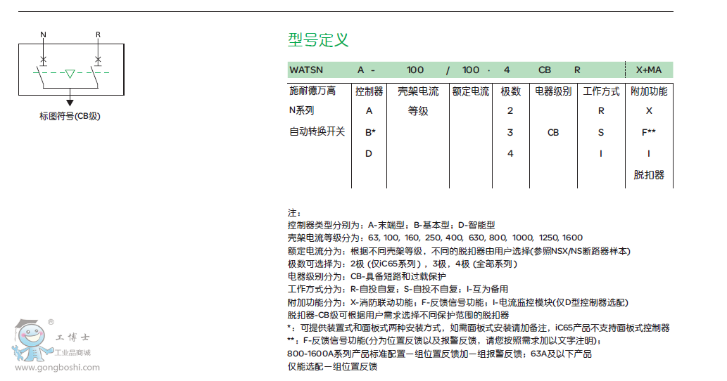CB級(jí) WATSN系列自動(dòng)轉(zhuǎn)換開(kāi)關(guān)若選擇具有過(guò)電流脫扣器的斷路器作為執(zhí)行器則屬于CB級(jí)自動(dòng)轉(zhuǎn)換開(kāi)關(guān)。具備選擇性的保護(hù)功能,能對(duì)下端的負(fù)荷和電纜提供短路和過(guò)載保護(hù);其接通和分?jǐn)嗄芰h(yuǎn)大于使用接觸器和繼電器等其他元器件。