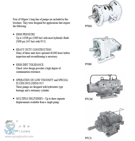 Four of Oilgear’s long line of pumps are included in this brochure. They were designed for applications that require