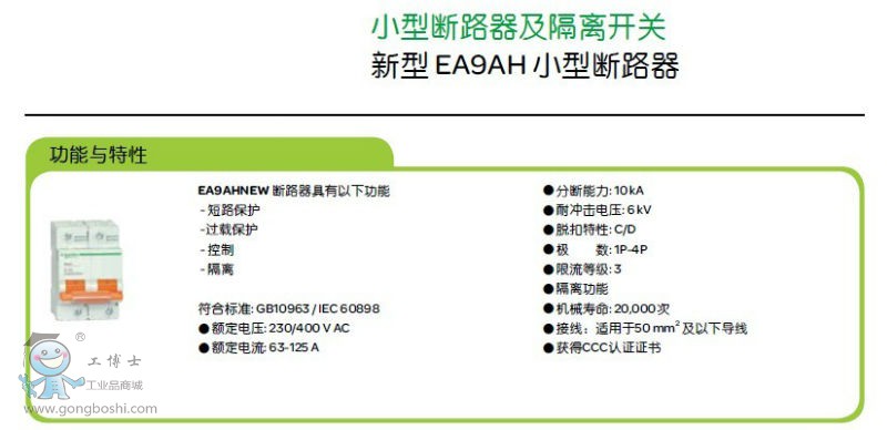 施耐德 EA9AH 1P C63A 小型斷路器 EA9AH1C63NEW