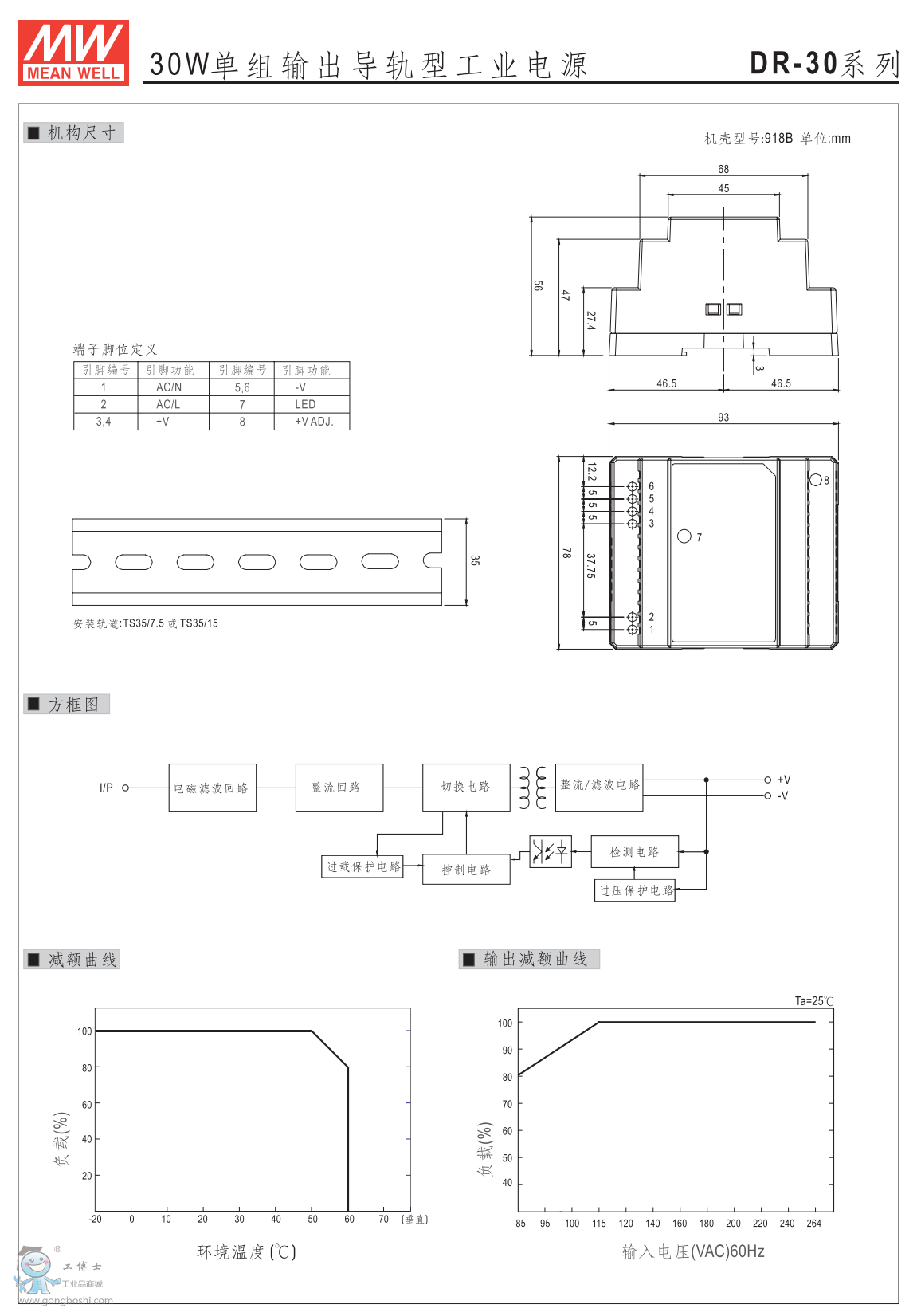 臺灣明緯導軌電源DR-30-24 24V1.5A 供應 |