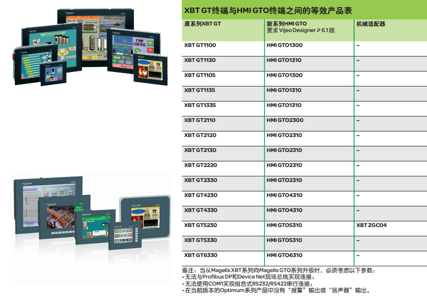 | 原XBTG系列與HMIGTO新產品對照表 |