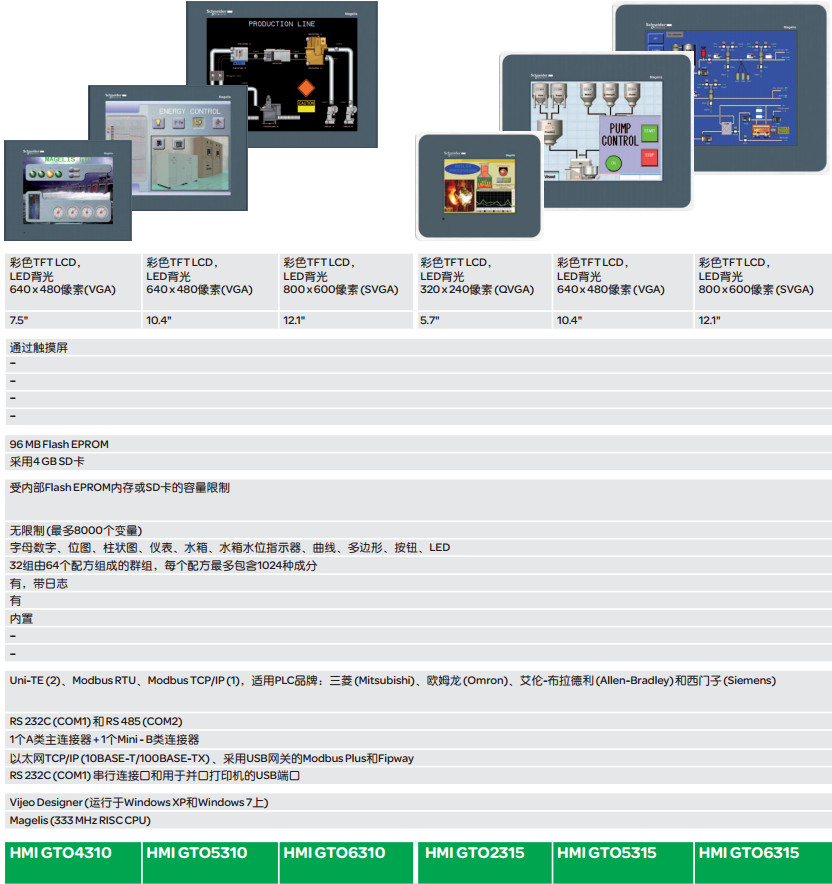 可擴展性也很強,施耐德HMI產品不僅只是和施耐德的控制產品相配套的使用,而且還能和其他公司的產品整合使用,