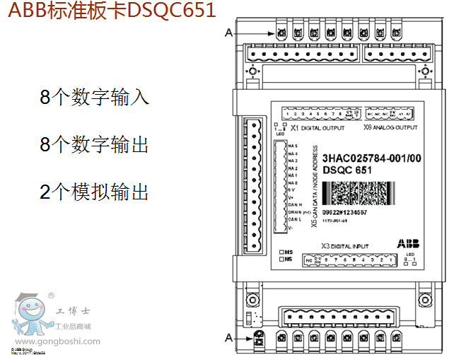 ABB機器人IO通訊板卡DSQC651 8進8出2個模擬量輸出數字式直流24Vio通訊板卡