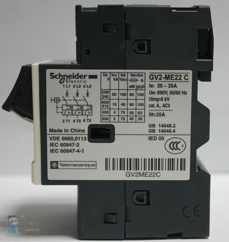 電動機控制與保護性能符合IEC 947-2 and IEC 947-4-1標準;