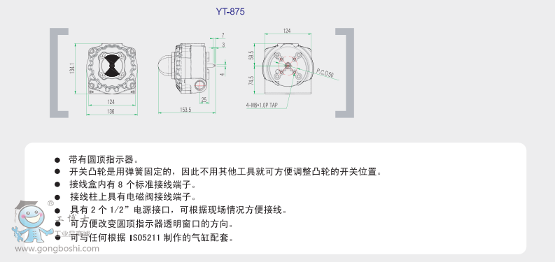 •  可與任何根據(jù)ISO5211制作的氣缸配套.
