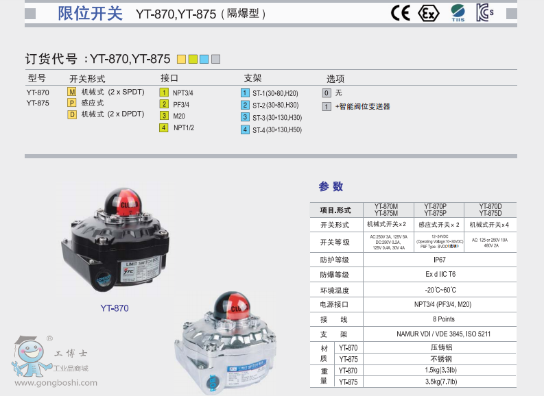 YTC(ROTORK) YT-875 限位開關(guān) (不銹鋼316,隔爆型)