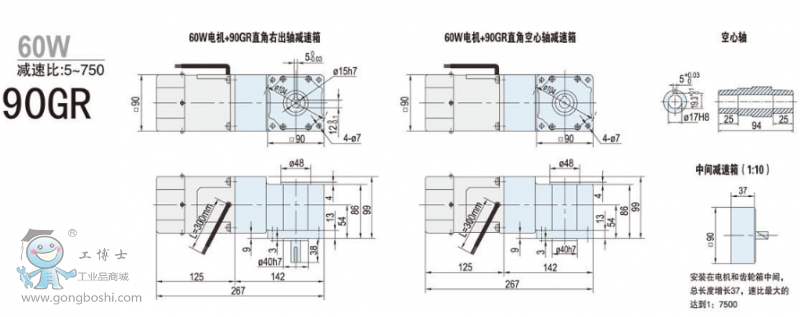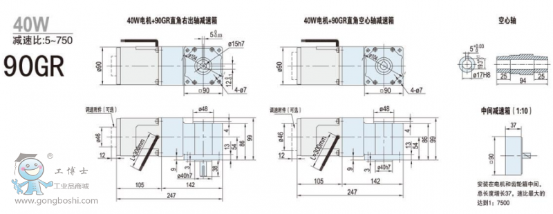 90GR 40W/60W/90W/120W直角齒輪減速電機