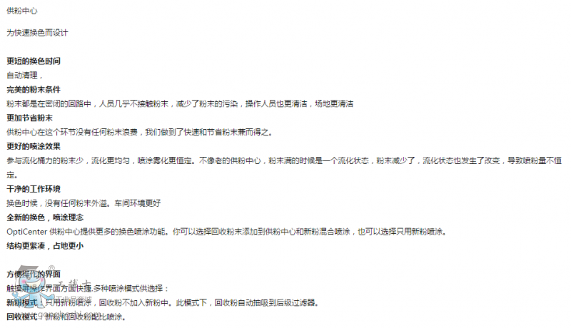 供粉中心閉環粉末循環保證了運作及換色過程中的無塵工作環境