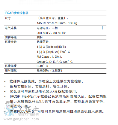 IRC5P噴涂機(jī)器人控制系統(tǒng)配備新式防爆型Ex FlexPaint Pendant示教器和新版噴涂工作站監(jiān)視系統(tǒng)- RobView 5。