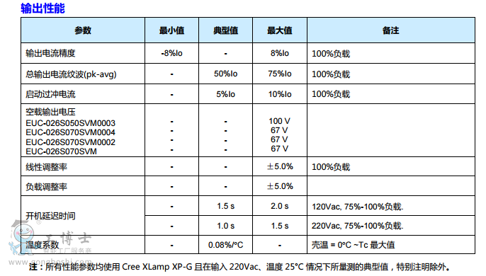 注:所有性能參數均使用 Cree XLamp XP-G 且在溫度 25°C 情況下所量測的典型值,特別注明除外。