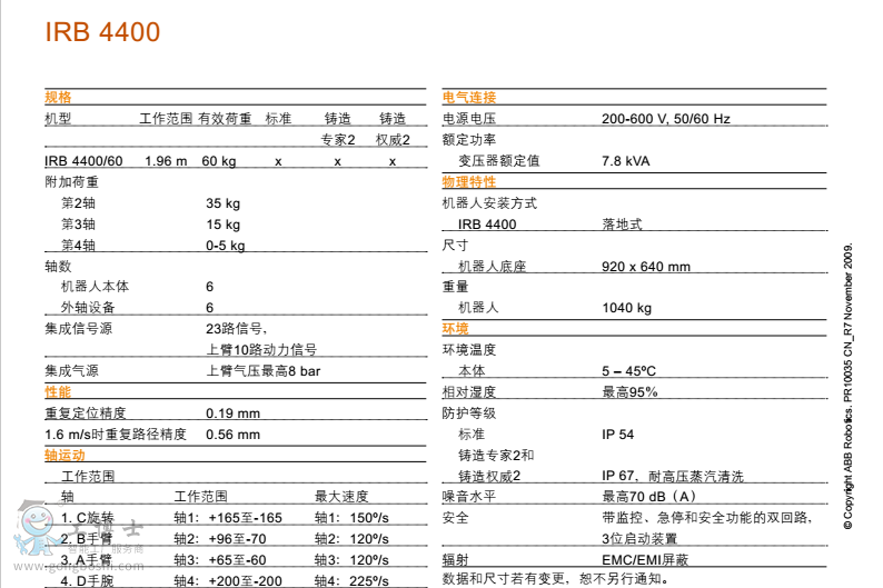 ABB快速,緊湊通用型工業機器人IRB4400