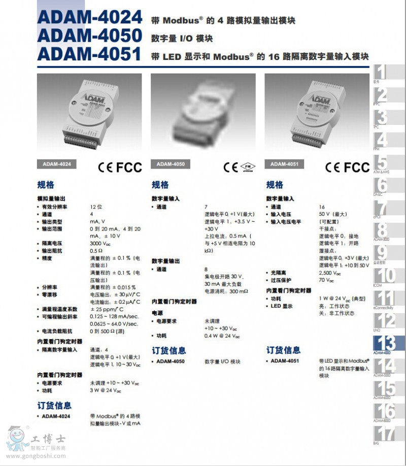 研華數(shù)據(jù)采集模塊ADAM-4051 帶LED顯示的16路隔離數(shù)字量輸入模塊 |