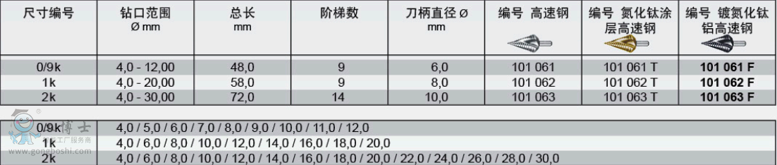 德國RUKO銳科階梯鉆 螺旋刀刃帶分裂式鉆尖,短型
