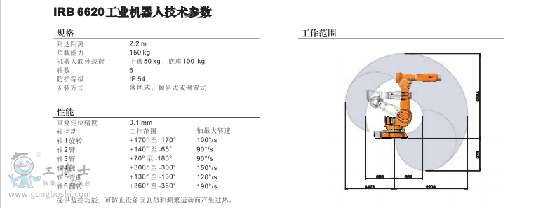 IRB 6620專為汽車工業客戶度身定制, 由于 IRB6620獨特的緊湊性和敏捷性,可采用地面安裝、支架安裝、倒置安裝和傾斜安裝等四種安裝方式。