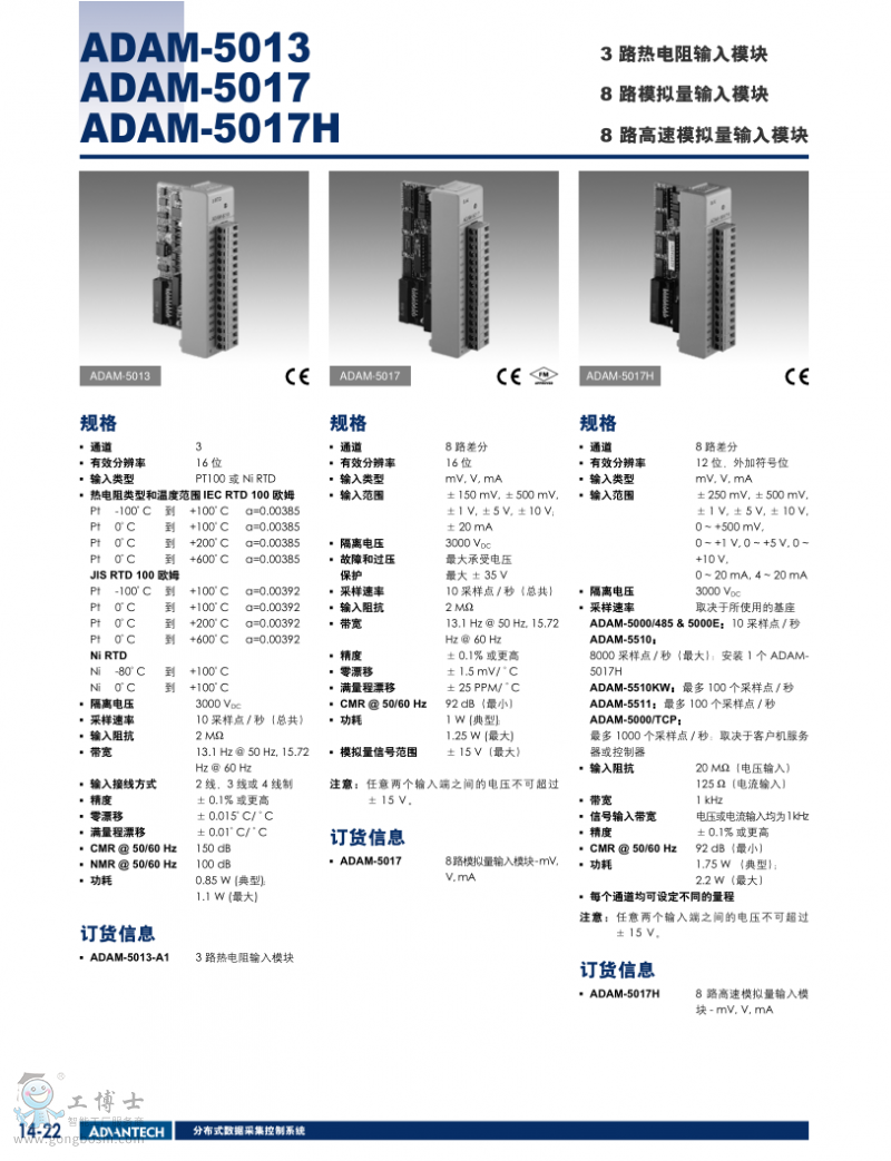品牌: ADVANTECH/研華               型號(hào):ADAM-5017                 類型:8路通用模擬量輸入