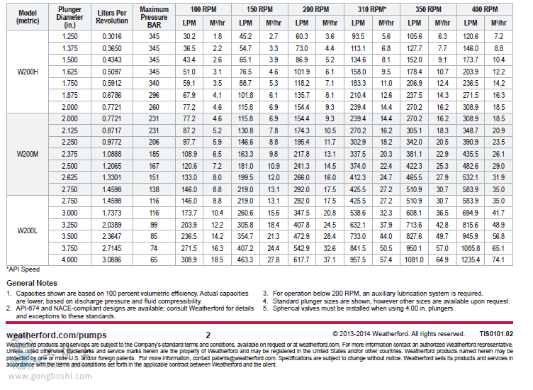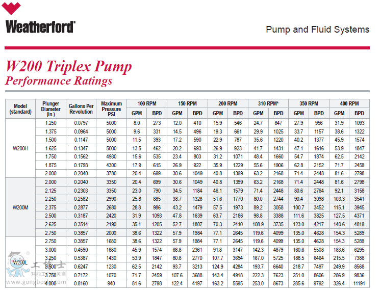 威德福Weatherford三缸工業泵 W200 W200H W200M W200L