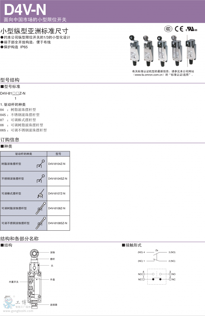 原裝日本歐姆龍OMRON限位開關D4V-N通用直立型D4V-8104Z-N |