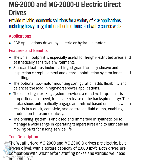 威德福 MG-2000-D 螺桿泵電驅動頭