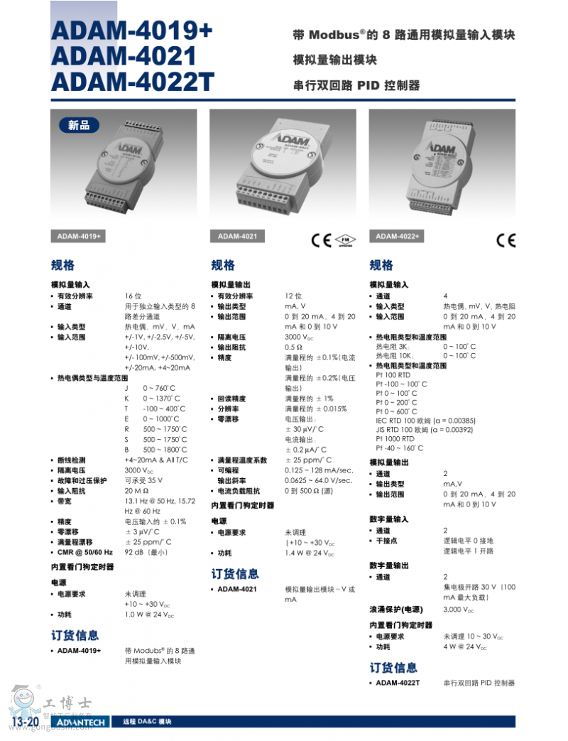 品牌: ADVANTECH/研華             型號:ADAM-4021             類型:AO模擬輸出模塊