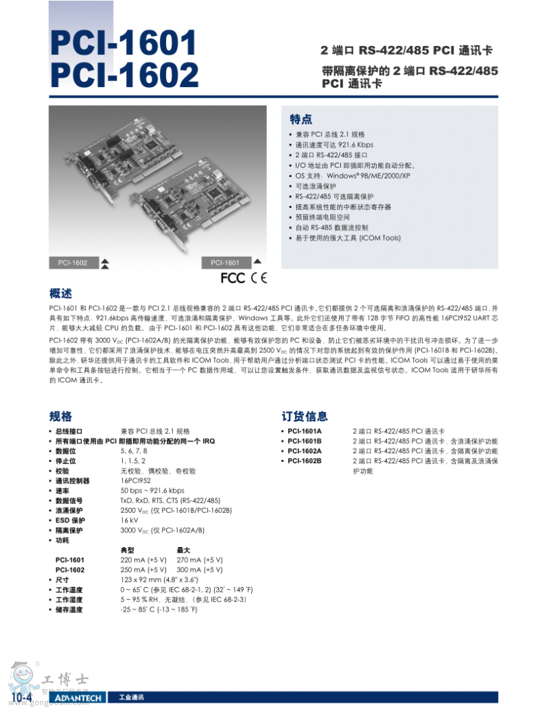 品牌: ADVANTECH/研華              型號:PCI-1602             類型:工控電腦