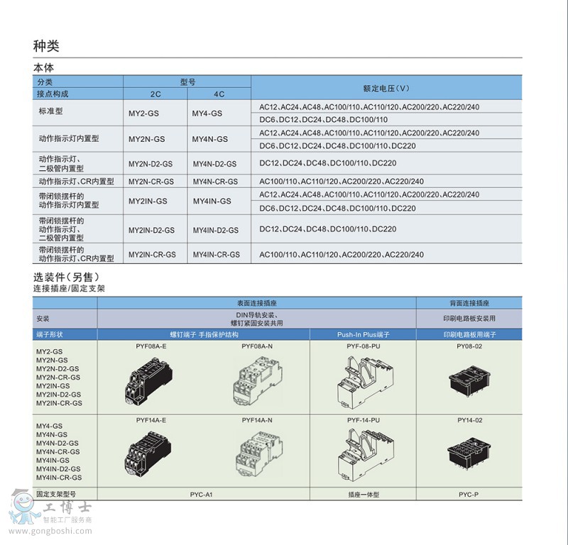 OMRON 歐姆龍標準型 帶動作指示燈 微型功率繼電器 MY2N-GS AC12220/240 |