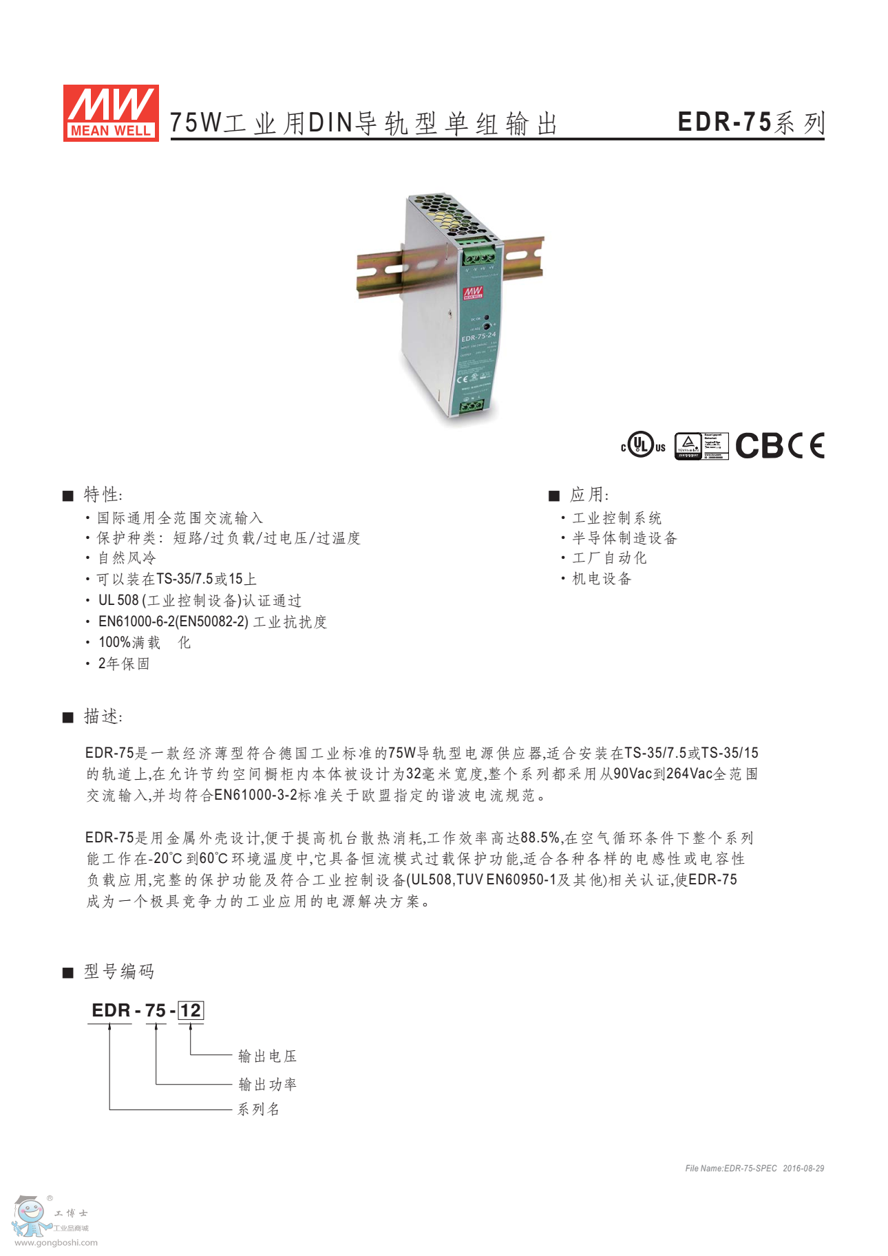 自然風冷,內置恒電流限制電路,安裝導軌TS-35/7.5或TS-35/15