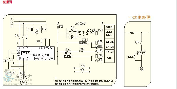 STRG系列電動機軟起動控制柜是以STRB軟起動器為核心起動元件成套的軟起動控制裝置,軟起動柜內配置了三相電源進線斷路器、旁路接觸器、預留了遠程控制的接口端子,柜門上配有起動、停止按鈕及運行、停止、故障指示,同時還配有電流表及電壓表,以顯示電源電壓及電機運行電流。STRG系列產品可直接安裝使用。其接線原理圖見下圖