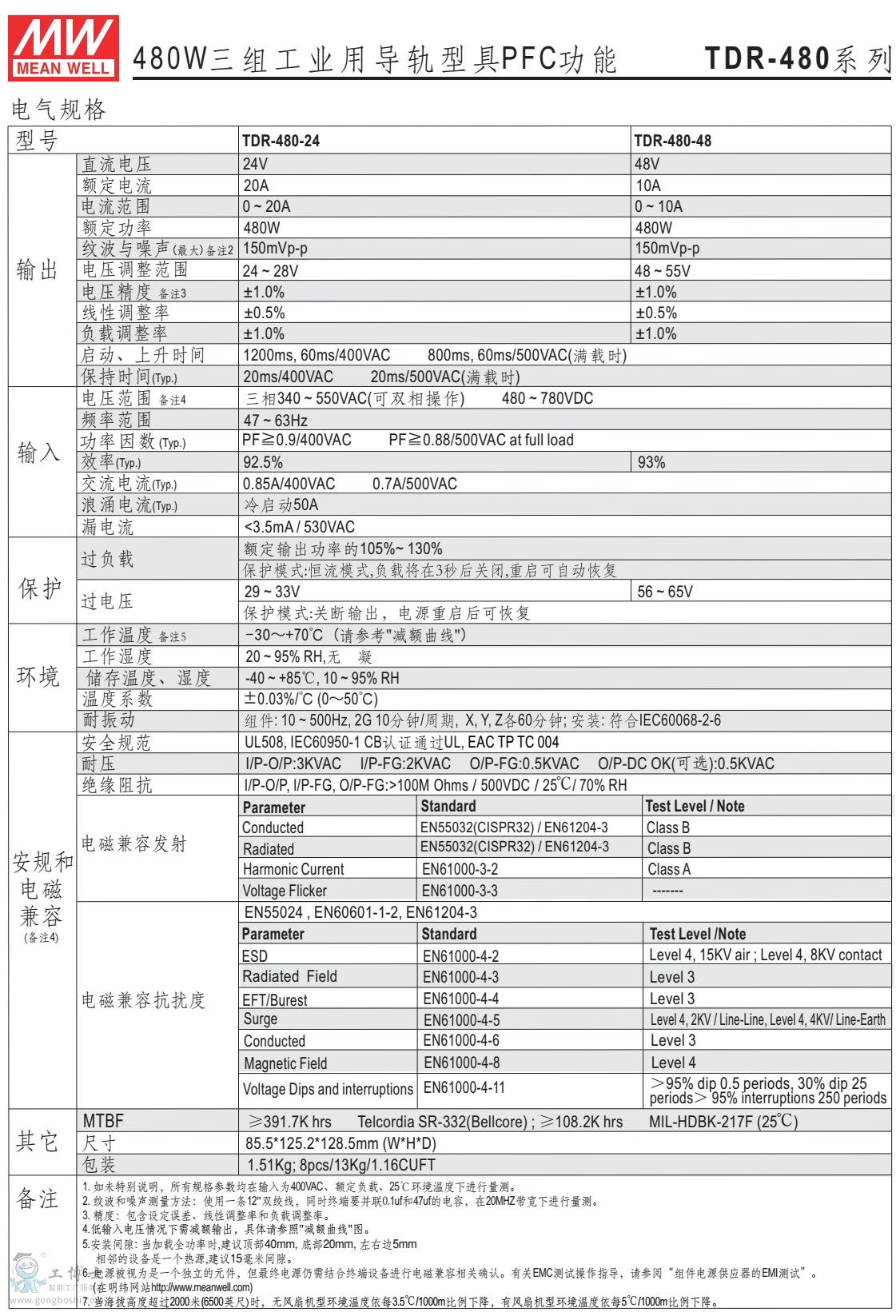 TDR-480-48 輸出48V 10A 輸入340~550V