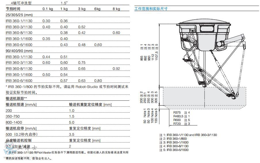 表中節(jié)拍時間在實際條件下測得,但根據(jù)實際運用情況的不同(工具數(shù)據(jù)、路徑半徑、夾具啟動等),節(jié)拍時間也會發(fā)生變化。