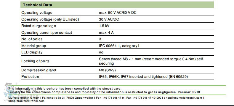 德國MURR穆爾一級代理.產(chǎn)品包括:連接器、變壓器、電源開關(guān)、電池閥、I/O模塊.傳感器與執(zhí)行器的連接系統(tǒng):M8系列連接器:M8插頭、M8單頭帶線、M8雙頭帶線.M12系列連接器:M12單頭帶線、M12插頭、M12雙頭帶線.分線盒系列:M8、MVPS8、M12、MVP12、特殊連接器、電磁閥插頭.自動化系統(tǒng):IP120緊湊型模塊 MBK、IP120可擴展型模塊 MBM、IP67緊湊型模塊 MVK、ASI總線模塊、IP20/40MASi、IP67MASI、IP68MASI.接口模塊:光耦/固態(tài)繼電器、光耦模塊、電源光耦模塊、電機控制模塊、直流電機控制模塊、智能接口模塊、前置操作面板、線路濾波器、干擾抑制器、接觸器的抗干擾抑制器、電磁閥適配器、電機干擾抑制器、通用干擾抑制器、繼電器模塊、單路薄片式繼電器、多路薄片式繼電器、時間繼電器.變壓器和緊湊型電源:變壓器、緊湊型電源模塊、單相、濾波、線性濾波、開關(guān)電源、三相、電壓轉(zhuǎn)換及整流模塊、電壓轉(zhuǎn)換.等。