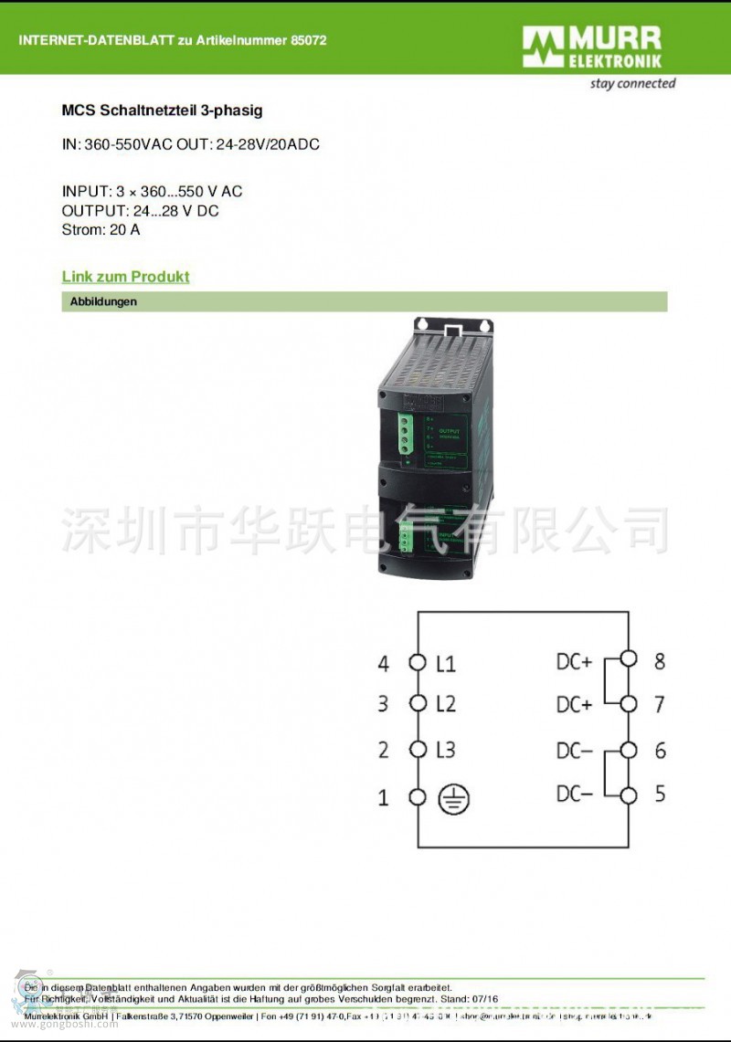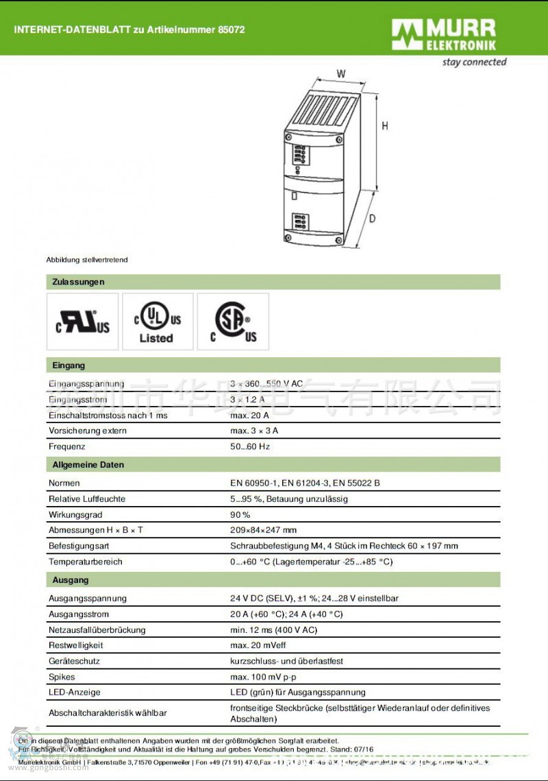代理供應德國MURR穆爾開關電源85072**進口原裝**現貨銷售