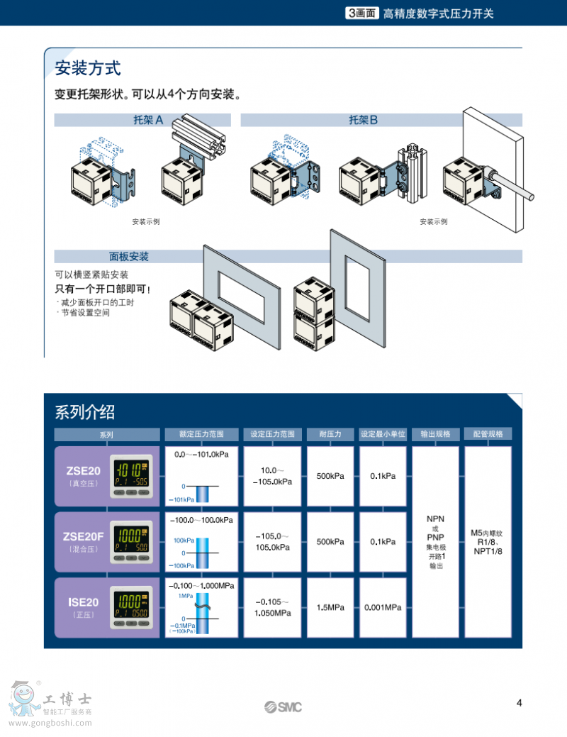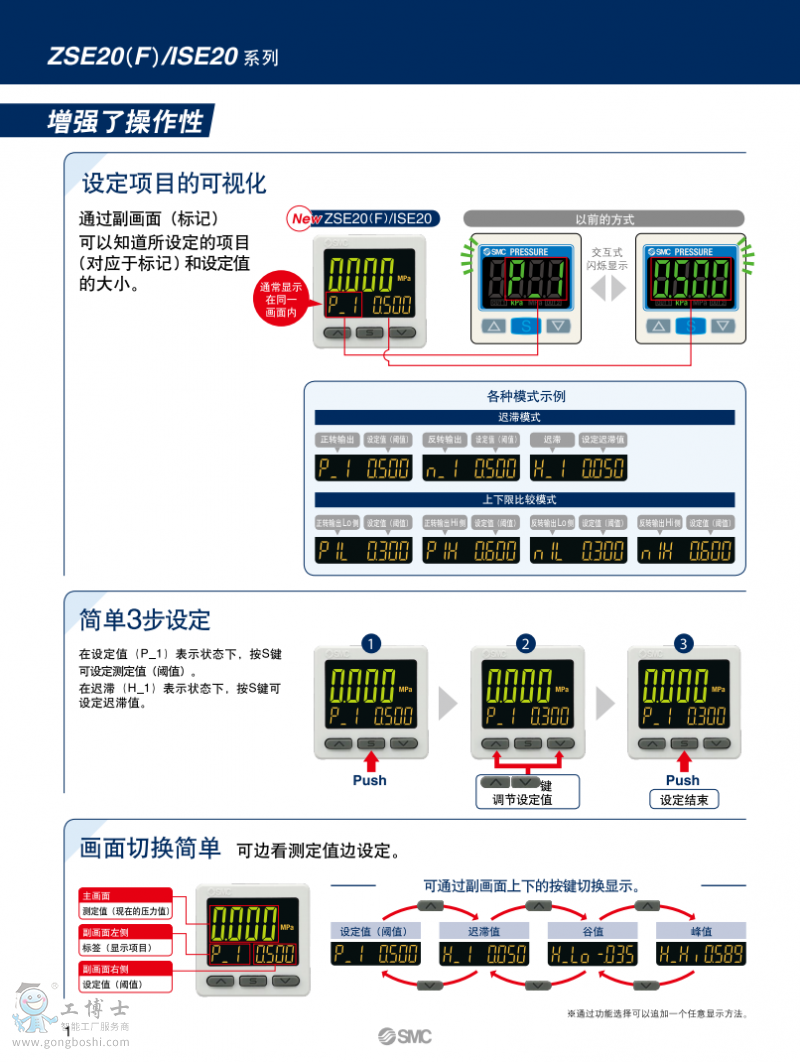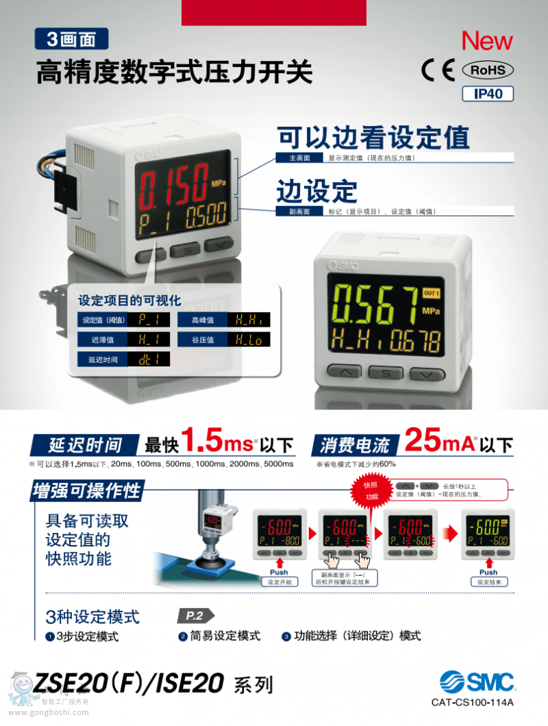 SMC 3畫面高精度數字式壓力開關 ZSE20(F)/ISE20