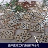 4、自潤滑塊的幾何形狀及鑲嵌要求。自潤滑塊的形狀有柱形和矩形兩種,自潤滑根據所占面積大小可采用柱形,反之可采用矩形。無論何種形狀必須鑲嵌牢固,以防在運行中脫落。