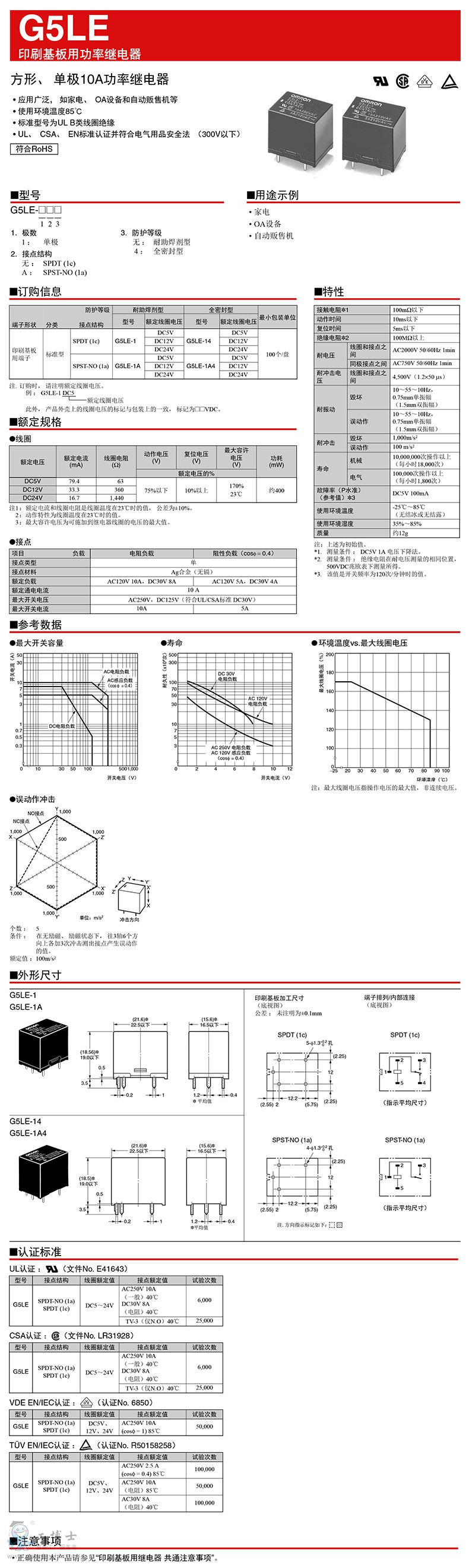 G5LE-14 24V 印刷基板用功率繼電器 歐姆龍/OMRON原裝** 千洲
