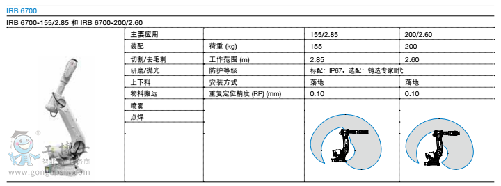 ABB IRB 6700-200/2.60 6軸 荷重200kg 工作范圍2600mm