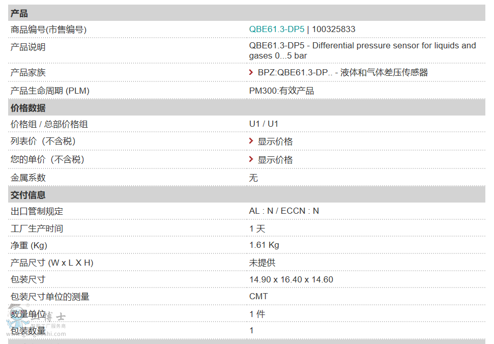 西門子壓差傳感器 QBE61.3-DP5 傳感器價格