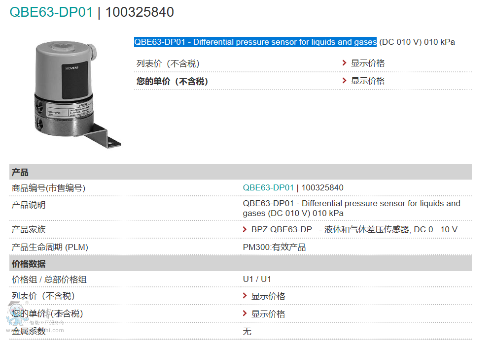西門子壓差傳感器 QBE63-DP01 傳感器價格