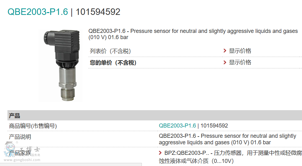 名稱: 壓力傳感器,用于測量中性或輕微腐蝕性液體或氣體介質