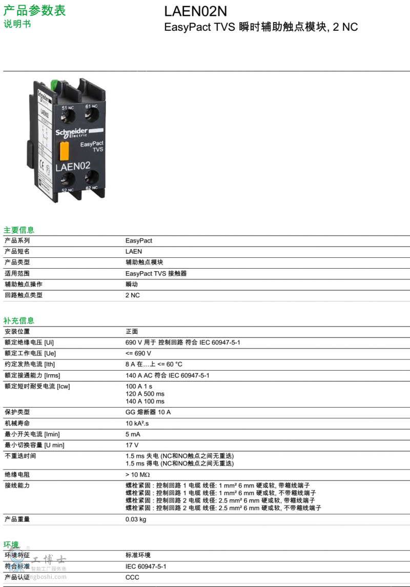 施耐德/Schneider 控制繼電器 LAEN02N 瞬時(shí)輔助觸點(diǎn)模塊 2NC