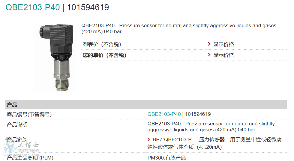 西門子壓力傳感器QBE2103-P40傳感器價格