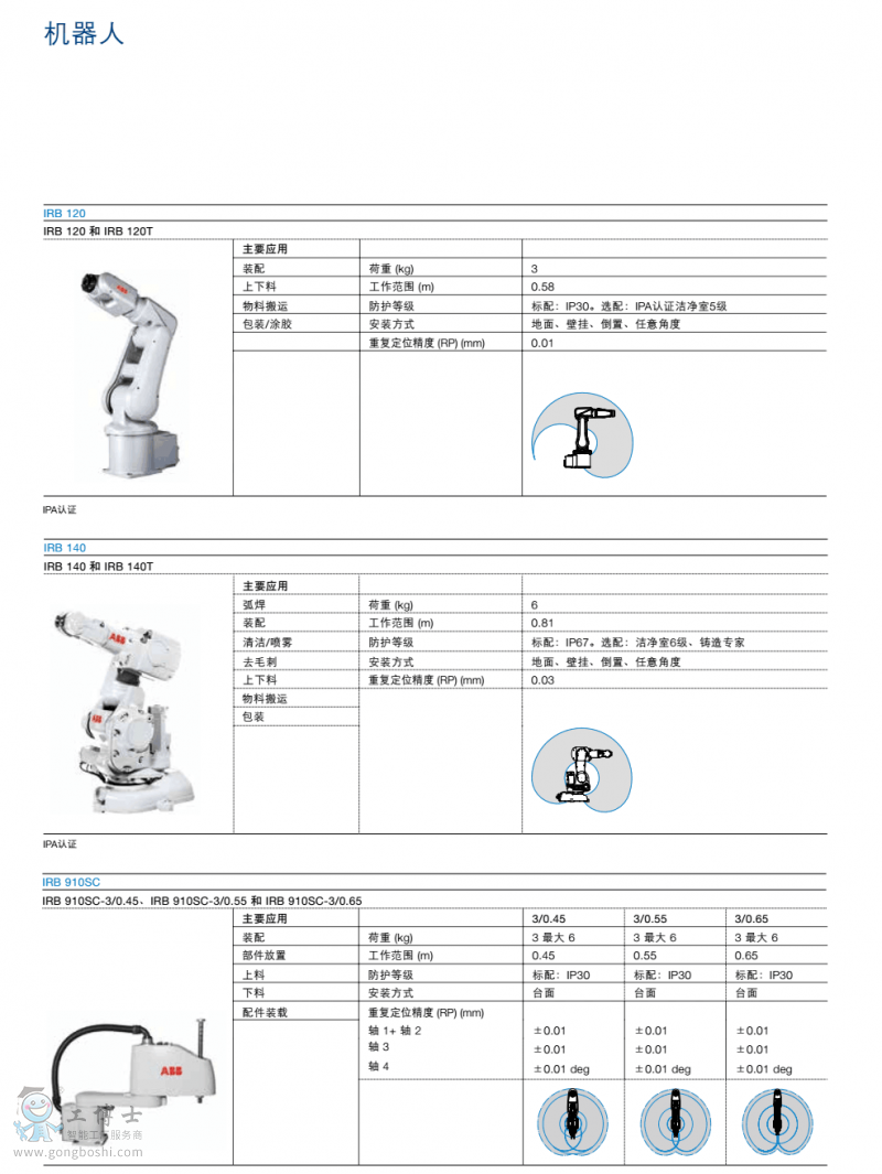 ABB機器人IRB120系列負載3KG臂展0.58M工業機器人
