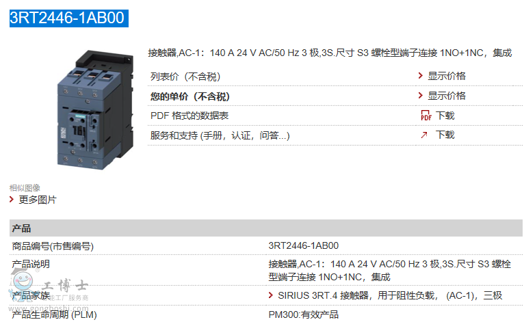 西門子接觸器3RT2446-1AB00用于阻性負載