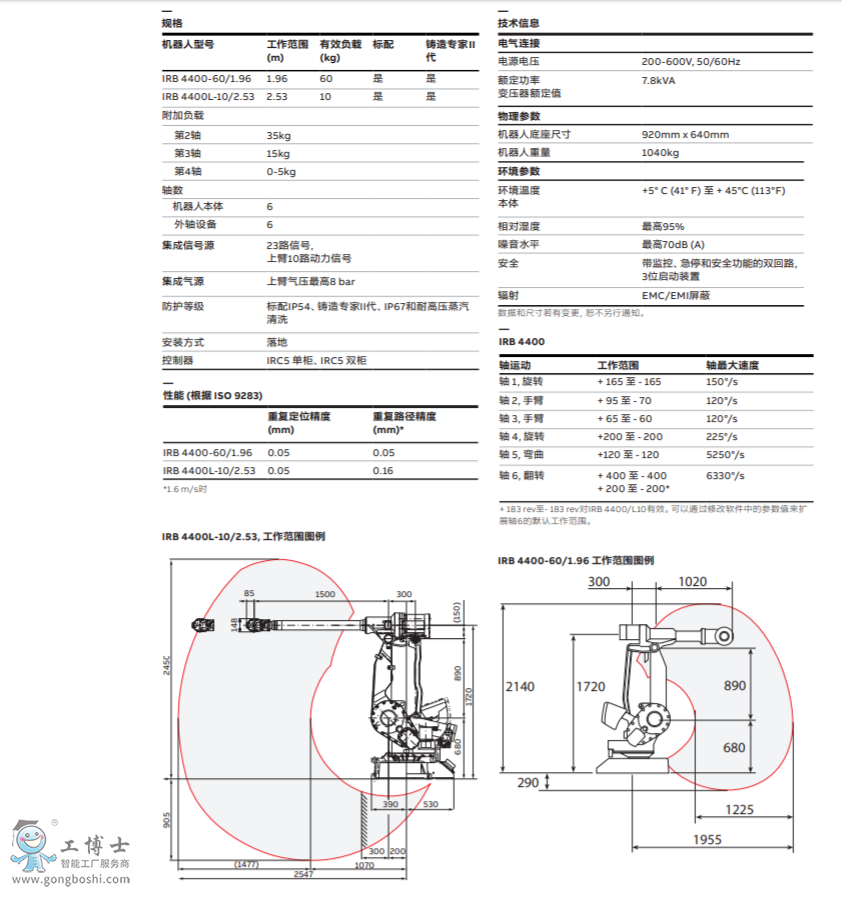 IRB 4400是一種機(jī)身緊湊的機(jī)器人,可承受載荷*高可達(dá)60kg。 除此之外,全能的IRB 4400能勝任各種高精度、高速度和高靈活性的應(yīng)用。
