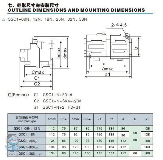 GSC1-1801N 天水二一三3極聯鎖交流接觸器18A 一常閉