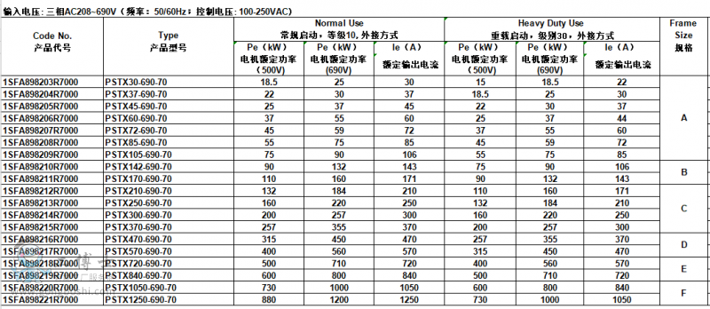 ABB軟啟動器PSTX系列