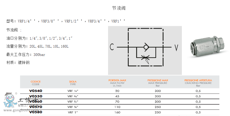 型號: VRF1/2"   流量 70l/min    壓力300bar    接口英制螺紋G1/2