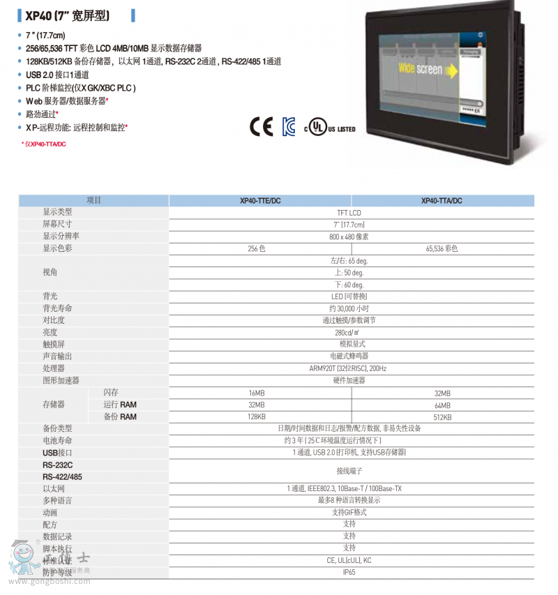 LS產電HMI人機界面觸摸屏XP系列觸摸屏XP40-TTA/DC