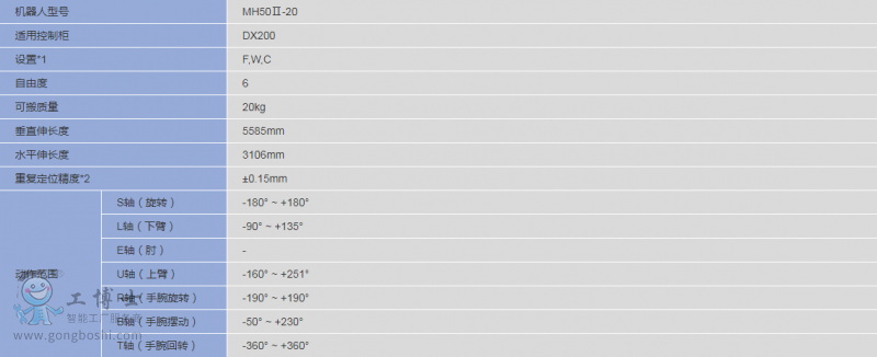 安川機器人 | MH50Ⅱ-20 | 6軸垂直多關節