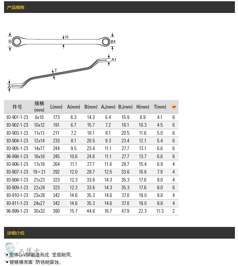 史丹利STANLEY手工具 公制精拋光45°角雙梅花扳手 93-909-1-23