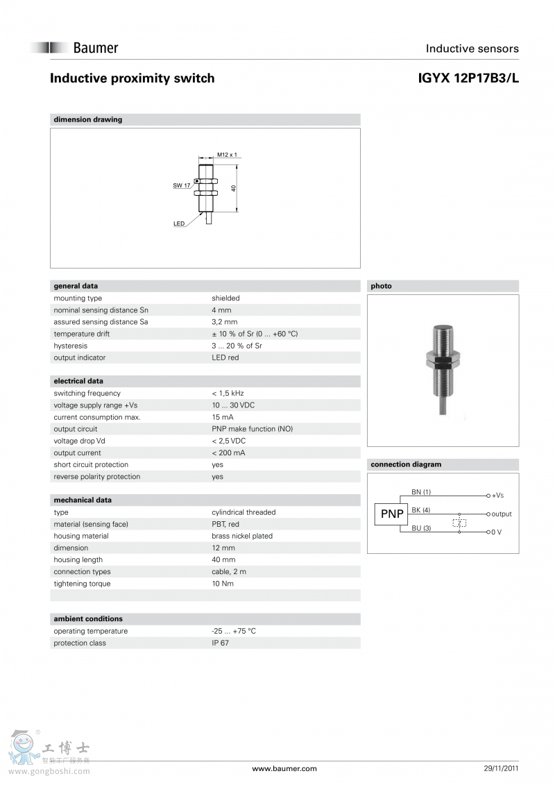 Baumer堡盟電感式接近開關(guān)IGYX 12P17B3/L開增值票 |